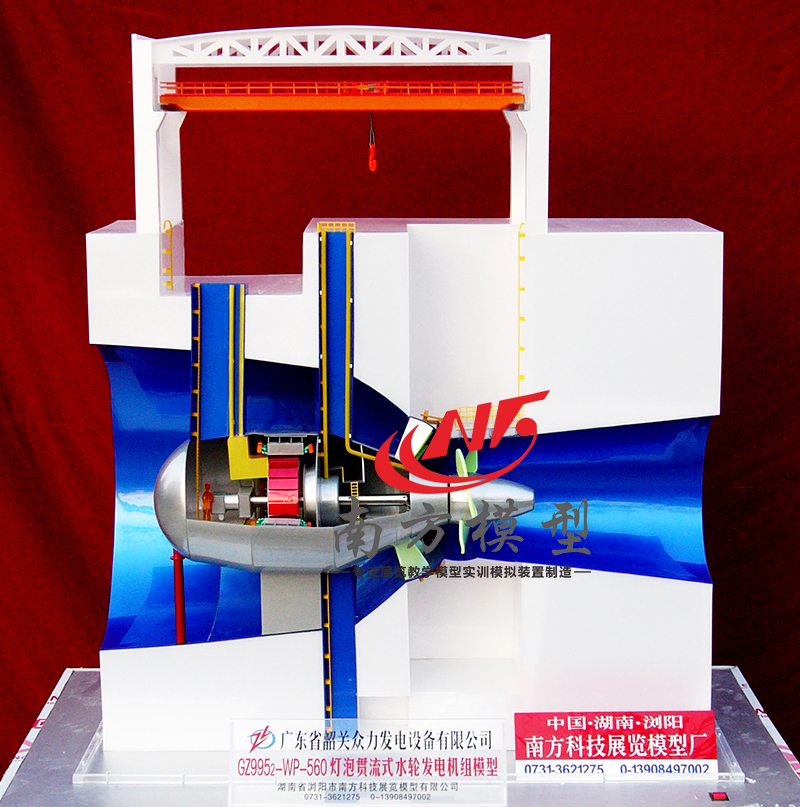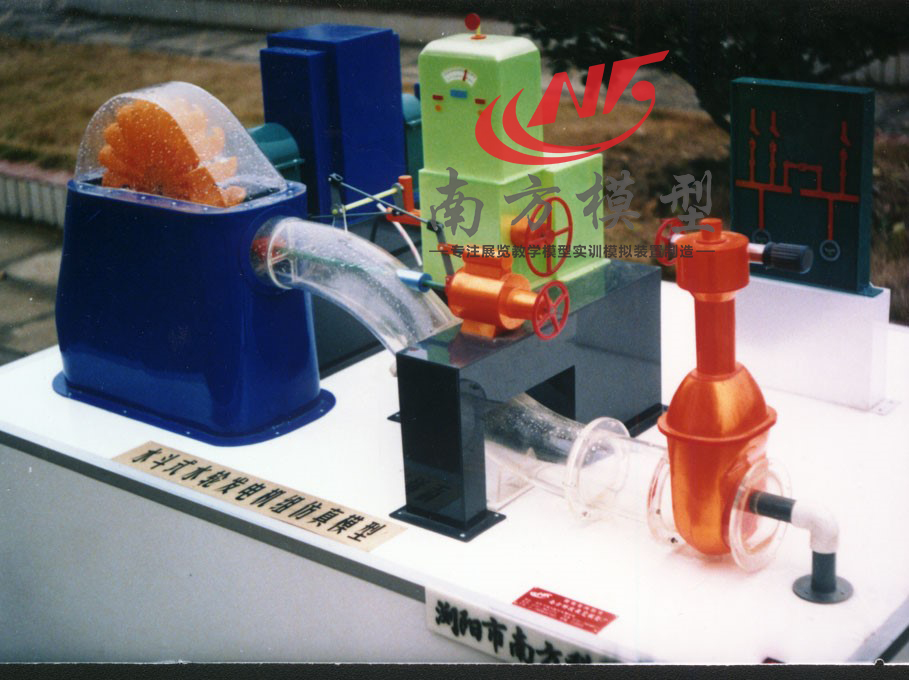 水斗式水輪機(jī)模型 水斗式水輪機(jī)模型主要結(jié)構(gòu)包括PMMA透明材質(zhì)輸水管、噴流機(jī)構(gòu)、轉(zhuǎn)輪、折向器和機(jī)殼等切擊式水輪機(jī)工作射流中心線與轉(zhuǎn)輪節(jié)圓相切,故名切擊式水輪機(jī)。其轉(zhuǎn)輪葉片均由一系列呈雙碗狀水斗組成,故又稱水斗式水輪機(jī)。切擊式水輪機(jī)是目前沖擊式水輪機(jī)中應(yīng)用最廣泛的一種機(jī)型。